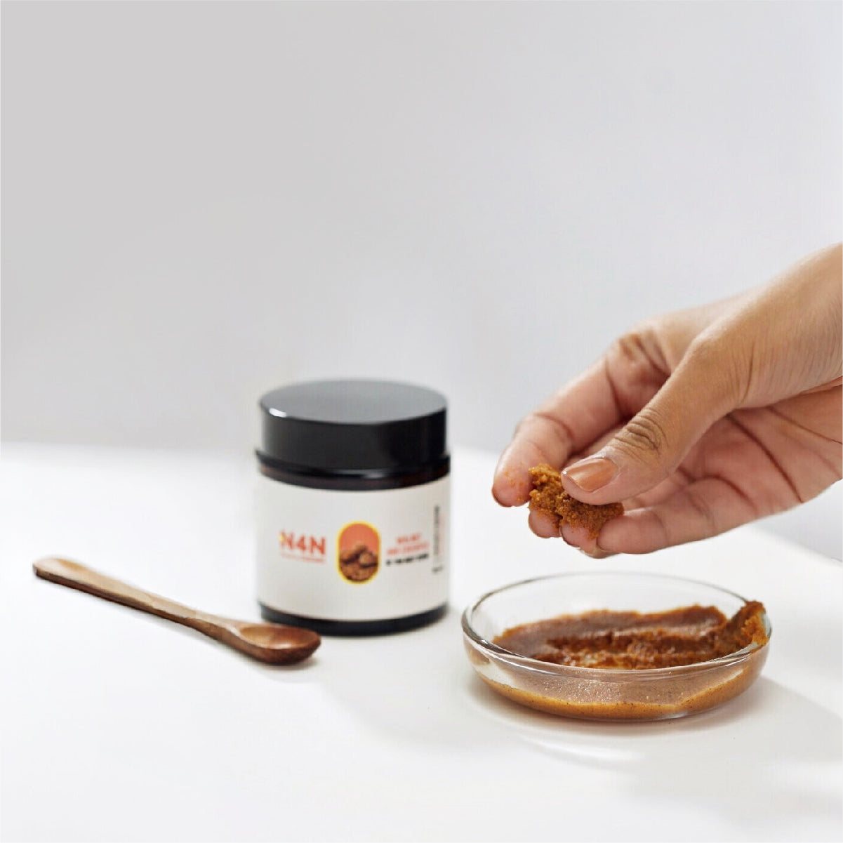 Our magic De Tan Body Scrub helps with tan removal and reducing excess oil, leaving your complexion hydrated, glowing, and ready for its close-up. It also heals, regenerates, and helps fade tan lines. For the best experience, patch test before use. Rinse thoroughly if in contact with eyes. Natural ingredients may cause slight variations in appearance.