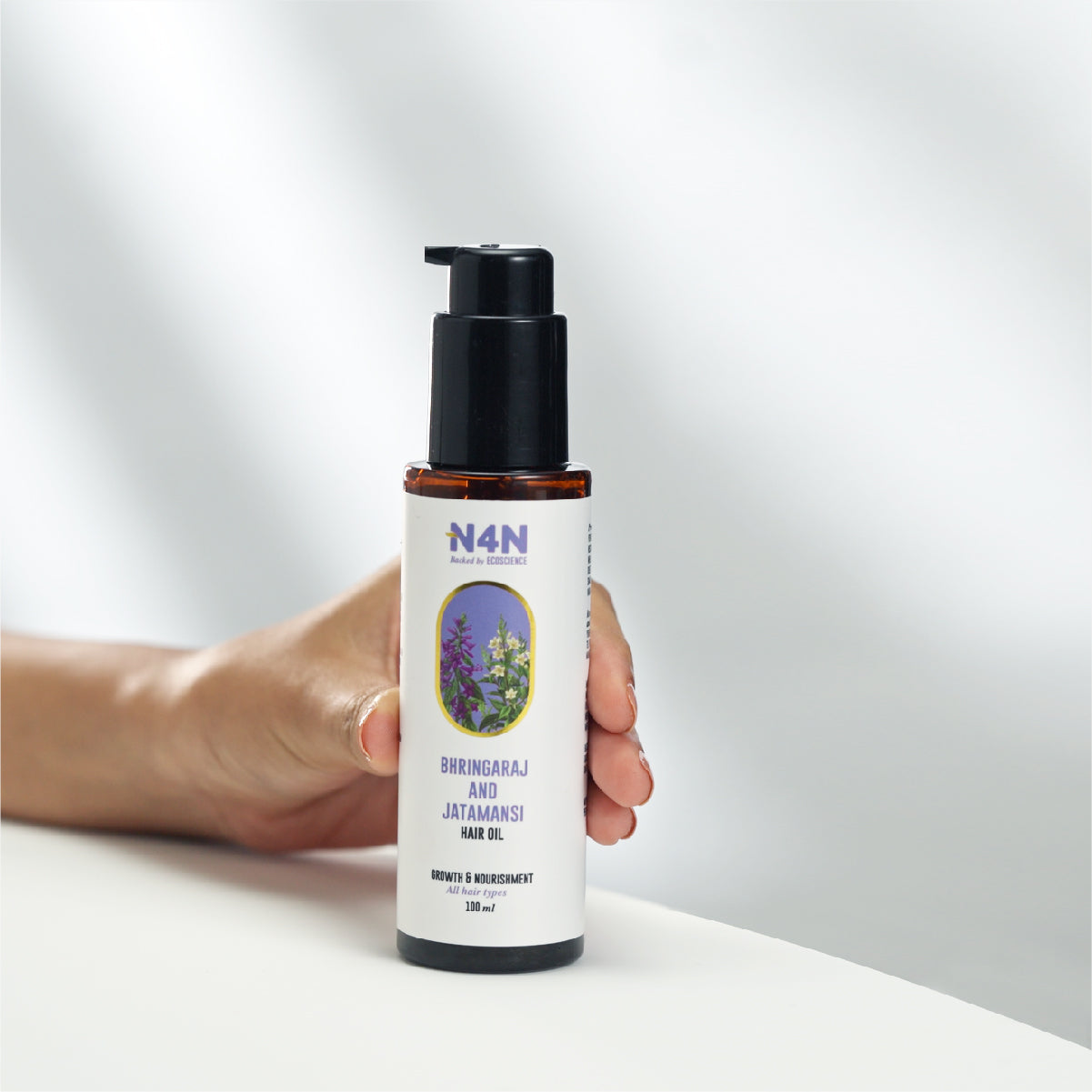 Crafted with the finest all-natural ingredients, our formula is free from harmful chemicals. Our Hair Oil with Bhringaraj & Jatamansi promotes hair growth and strengthens your hair. Bhringaraj helps reduce hair fall and prevent premature greying, while Jatamansi nourishes the scalp and strengthens hair roots. Unlike synthetic oils which contain mineral oils like LLP that can damage hair over time when used regularly, our natural oil revitalises and nurtures your locks. Choose N4N for vibrant, healthy hair.